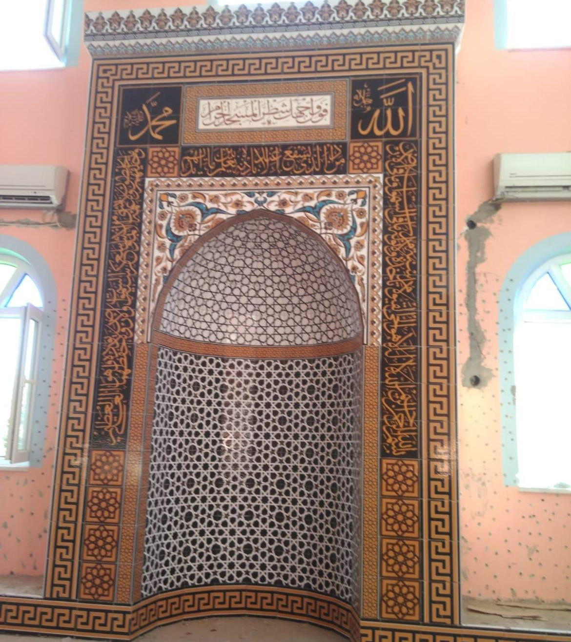 Our Mosque tile altar product creates a simple yet striking area in the area with its color preference that does not tire the eyes. In our model, in which geometric patterns are predominantly used, a semi-circular shape is used in the main area and the rich white color is preferred in this area.