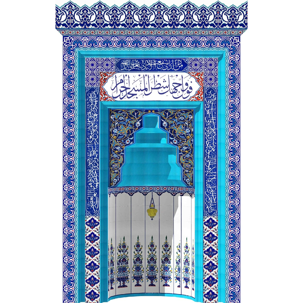 Our mosque tile altar model, designed with small-scale geometric patterns, aims to create a calmer and more relaxing design with flower motifs used in places. Our tile altar model, which is preferred by many people with its original design and lively structure, is also preferred because of the materials used in it.